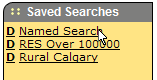 Click on the Name of the Search you wish to view inside the yellow Saved Searches control area to right of the screen: